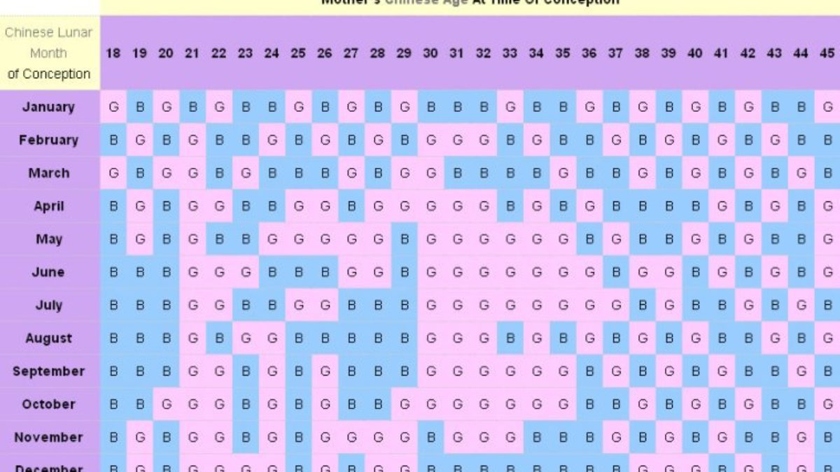 من المهم الإشارة إلى أن فعالية هذا الجدول لم يتم إثباتها علمياً، ولا يوجد دليل على أنه يمكنه تحديد جنس الجنين المتوقع بدقة.