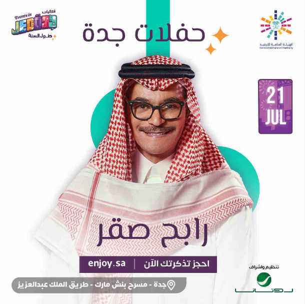 يستعد الفنان رابح صقر، لإحياء ليلة غنائية استثنائية في المملكة العربية السعودية، برعاية الهيئة العامة للترفية، وذلك ضمن فعاليات موسم جدة التي يحييها نجوم الغناء والطرب في مختلف الأماكن.