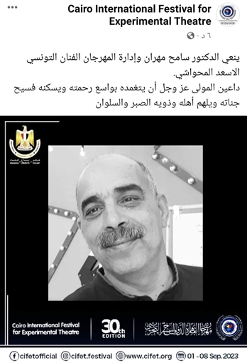 مهرجان القاهرة الدولي للمسرح التجريبي ينعي الفنان التونسي الأسعد المحواشي