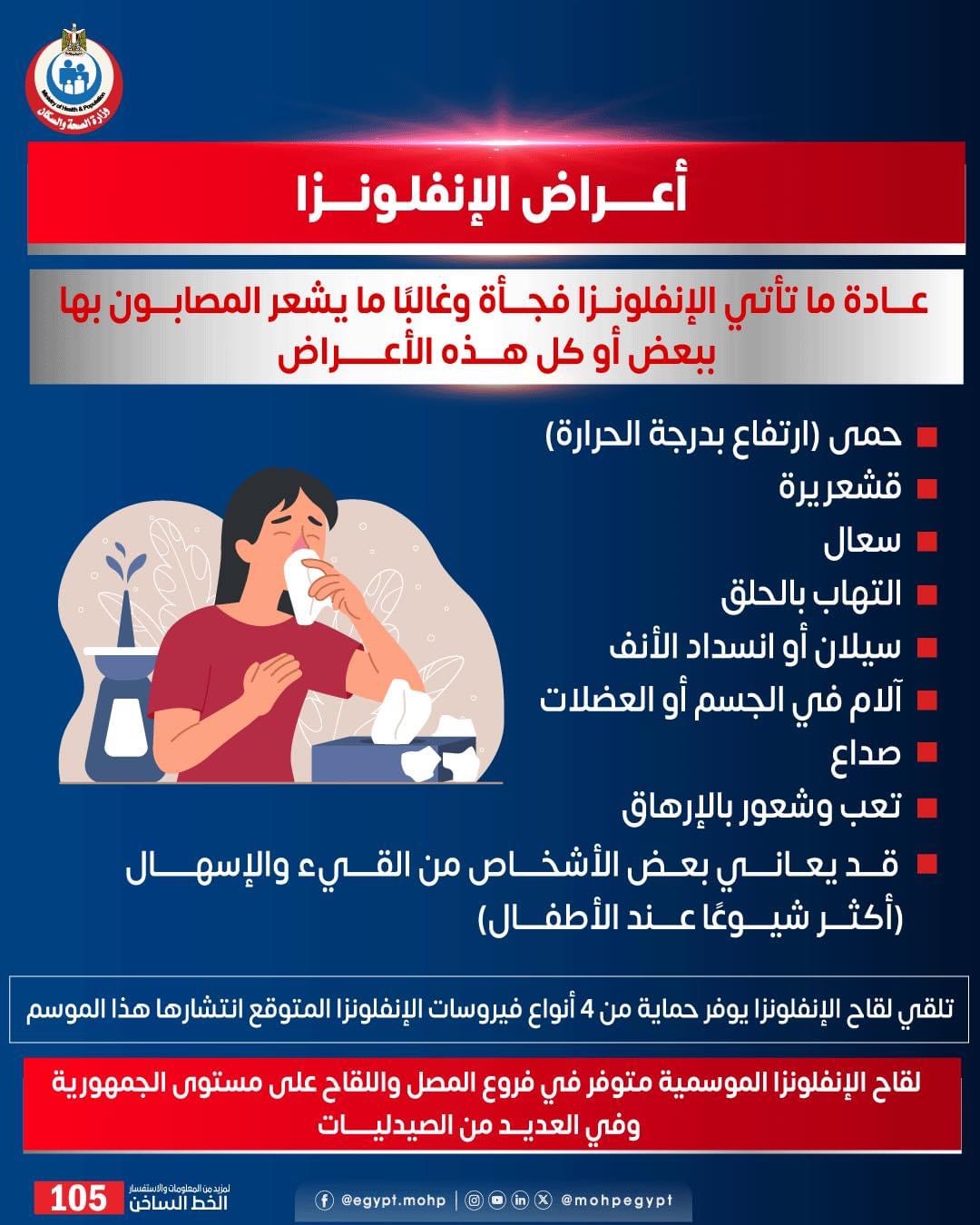 وزارة الصحة تكشف أعراض الأنفلونزا الموسمية وتنصح باللقاح لجميع الفئات