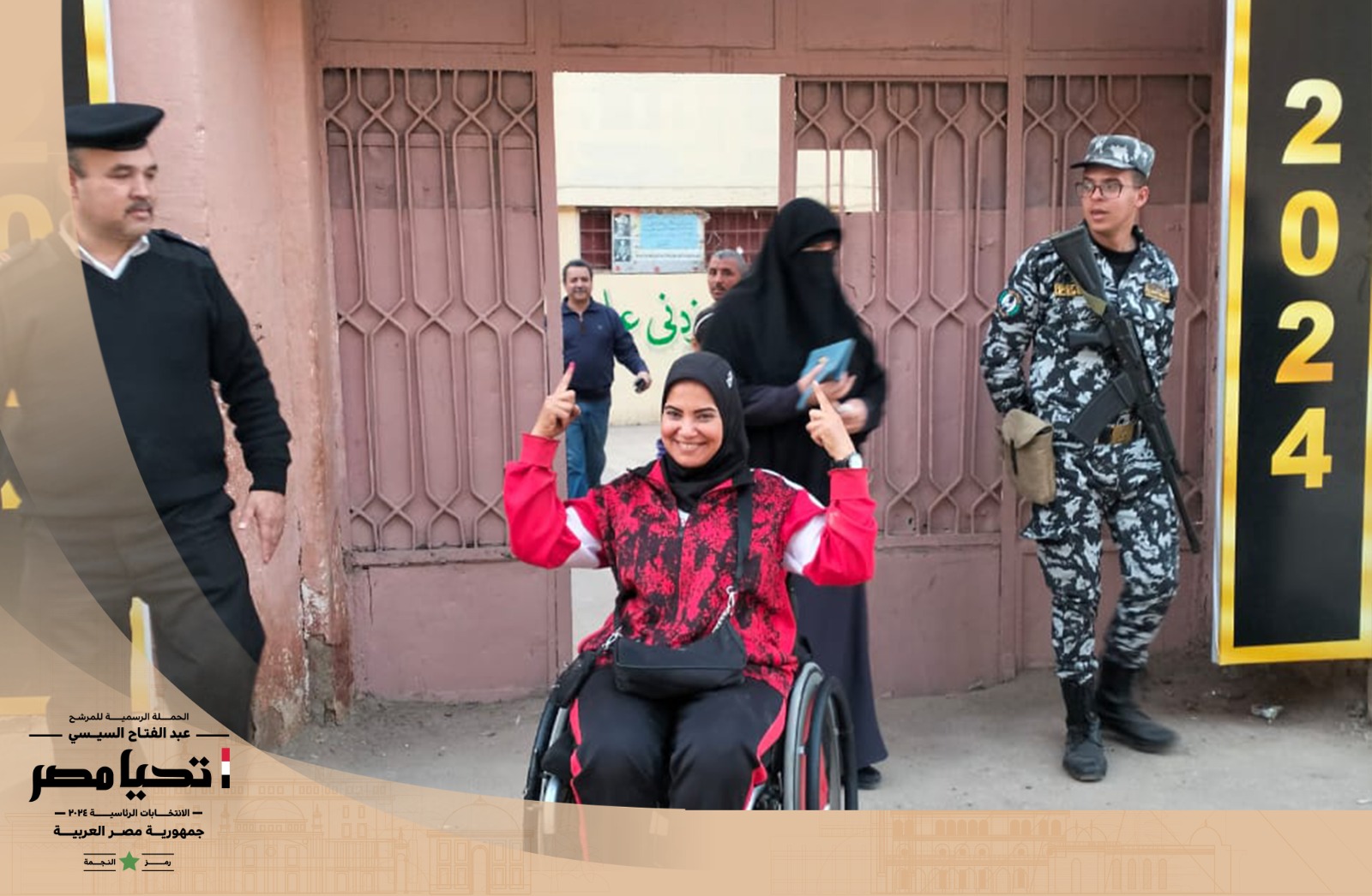 نشرت حملة المرشح الرئاسي عبد الفتاح السيسي، لقطات من توافد أبناء مصر من ذوي الهمم "على لجان الاقتراع للإدلاء بأصواتهم في الانتخابات الرئاسية 2024".